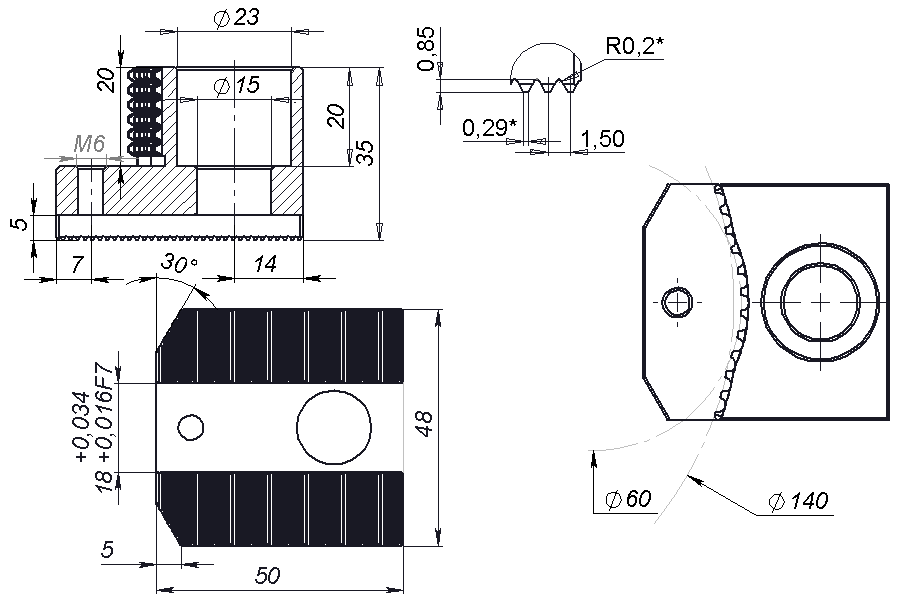 Токарные калёные кулачки 12″_60x140 с зубчатой метрической рейкой. Шаг зуба рейки 1.5×60°.