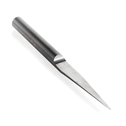 Применяется для нанесения гравировки и чистовой обработки трехмерного рельефа. Конструкция гравера: конусная рабочая часть имеет одну режущую кромку и плоскую площадку. Применение: гравировка — медь, алюминий, сталь, нержавеющая сталь. Диаметр площадки 0.2мм; угол рабочей части 30°; диаметр хвостовика 3.175мм; общая длина 38мм.
