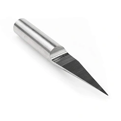 Применяется для нанесения гравировки и чистовой обработки трехмерного рельефа. Конструкция гравера: конусная рабочая часть имеет одну кромку и плоскую площадку, которая при вращении формирует плоскость. Применение: гравировка, снятие фасок, фрезеровка под изгиб композита — двухцветная плита, акрил, ПВХ, дерево, МДФ, ювелирный воск. Диаметр площадки 0.2мм; угол рабочей части 20°; диаметр хвостовика 6мм; общая длина 40мм.